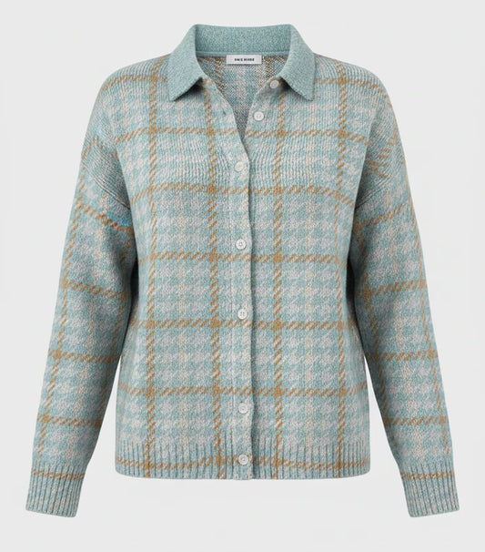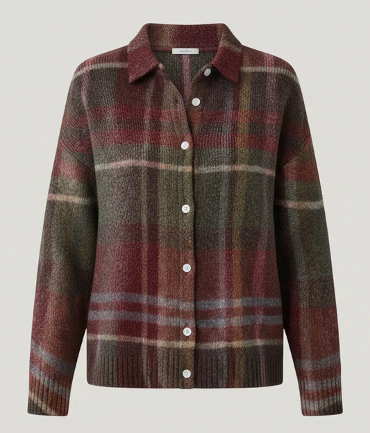 Sienna | Pehme ruuduline nööpidega kampsun kraega