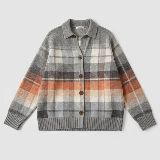 Christine | Pehme ruuduline nööpidega kampsun kraega