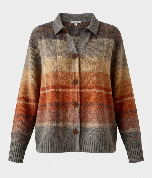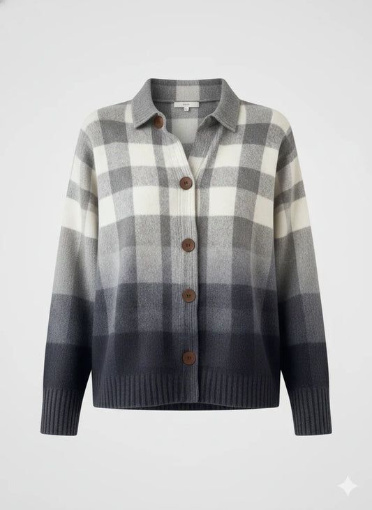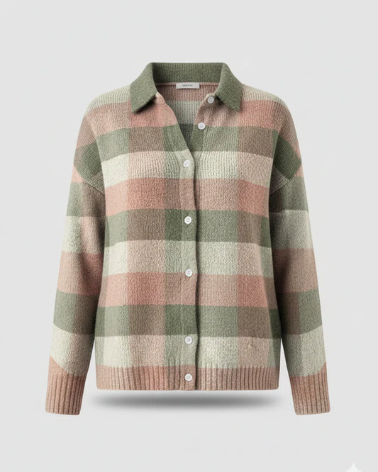 Helena | Pehme ruuduline nööpidega kampsun kraega
