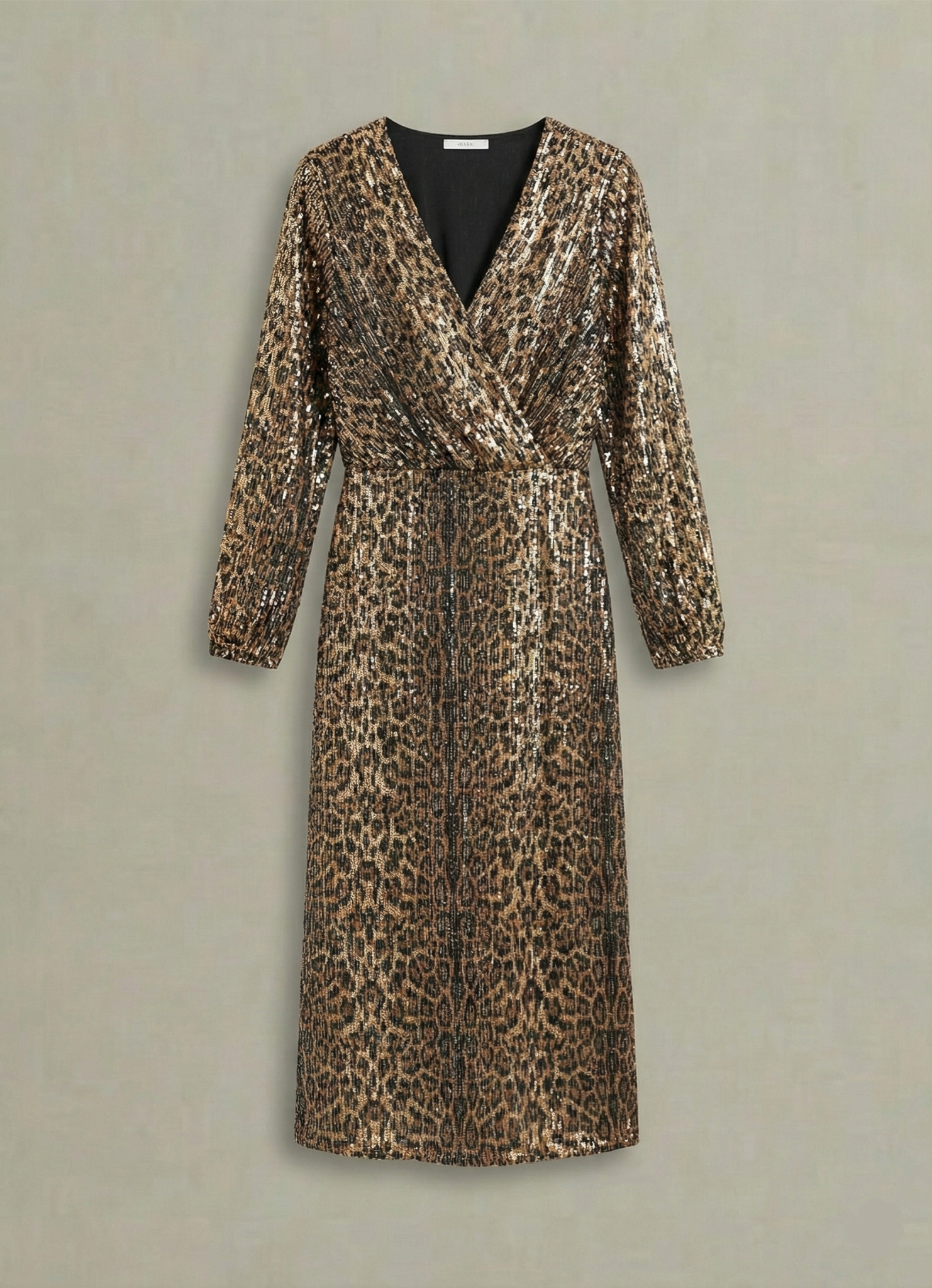 • Särav leopardi muster – Kaunistatud läikivate litritega luksuslikuks ja peoks valmis välimuseks, mis püüab iga valguskiirt.