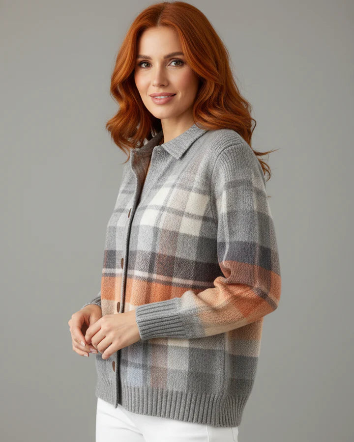 Sienna | Pehme ruuduline nööpidega kampsun kraega